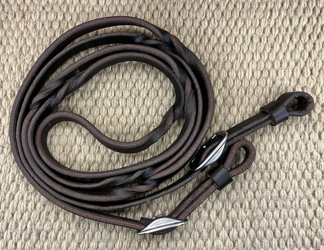 Closed Reins - CR30 - 5/8” 2 Plat Braid Barrel Reins Chocolate Harness